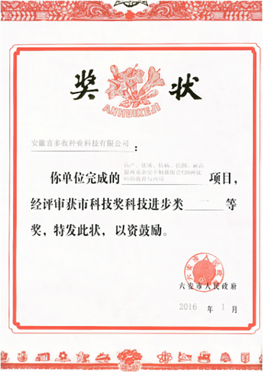 | 市級(jí)龍頭企業(yè) | 2016年 |