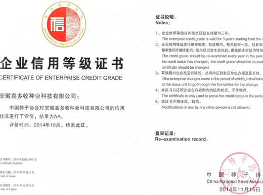 企業(yè)信用評(píng)價(jià)AA級(jí)信用企業(yè) |