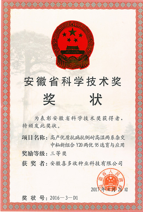 安徽省科學(xué)技術(shù)三等獎(jiǎng) |