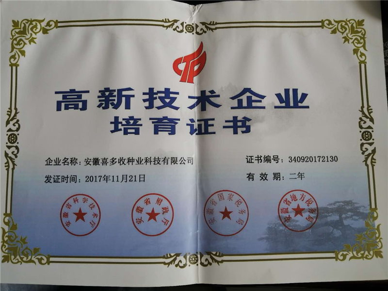 | 高新企業(yè)技術(shù)培育證書 | 2017年 | 安徽省科學(xué)技術(shù)廳 |