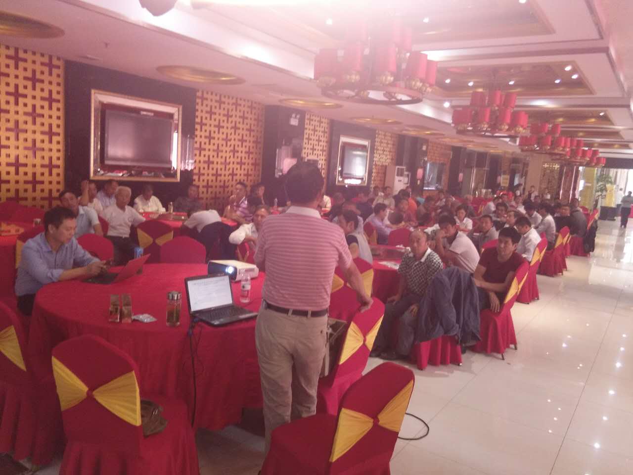 接著,與會人員跟隨大巴車返回狀元府大酒店參加“喜多收水稻新品種C兩優(yōu)198測產(chǎn)觀摩培訓(xùn)會”。公司董事長兼總經(jīng)理胡宗兵先生親自到會場,對各位客戶在百忙中前來參會表示熱烈歡迎!真摯的感謝所有嘉賓一直以來對喜多收公司的支持和厚愛,希望以后與參會的嘉賓的合作再上一個新臺階;公司技術(shù)總監(jiān)王林研究員為與會的嘉賓深入淺出、圖文并茂地介紹了C兩優(yōu)198的品種特征特性及配套的雜草防除、病蟲防控、科學(xué)施肥、水漿管理等綠色高產(chǎn)栽培技術(shù);公司副總經(jīng)理趙見朝先生發(fā)布了C兩優(yōu)198的銷售優(yōu)惠政策,鼓勵與會嘉賓現(xiàn)場參與訂購享受優(yōu)惠活動。會上,胡宗兵還親自為本次“猜產(chǎn)活動”的中獎嘉賓頒獎并合影留念。會議取得圓滿成功!
