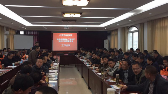 2017年11月17日,在裕安區(qū)農(nóng)業(yè)委員會會議室,來自安徽鑫源米業(yè)集團、六安市長健米業(yè)有限公司、六安市豐碩米業(yè)有限公司等四家糧食收購加工企業(yè),安徽喜多收種業(yè)科技有限公司等五家種子企業(yè),裕安區(qū)農(nóng)事服務中心以及100余位種糧大戶代表歡聚一堂,共同參加由裕安區(qū)農(nóng)委主持召開的“裕安區(qū)專用品牌糧食訂單生產(chǎn)及農(nóng)產(chǎn)品質(zhì)量安全會議”;共同商談相互理解、相互支持、協(xié)調(diào)一致、合作共贏、齊心協(xié)力推進裕安區(qū)專用品牌糧食生產(chǎn)大計。