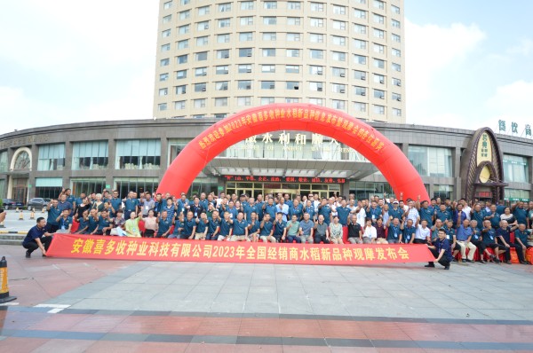 2023年8月19-20日,安徽喜多收種業(yè)在安徽水利和順大酒店召開了“安徽喜多收種業(yè)2023年新品種信息發(fā)布會”,會議邀請了來自江蘇、湖南、湖北、河南、江西、安徽等省的500多位種業(yè)界嘉賓到會,會議還邀請了安徽省著名水稻育種家朱啟升研究員、六安市農(nóng)業(yè)農(nóng)村局中心副主任陳良松研究員、安徽省農(nóng)科院水稻研究所副所長倪大虎博士、安徽省農(nóng)業(yè)技術推廣總站的有關專家、六安市種子管理站有關領導參會指導工作。