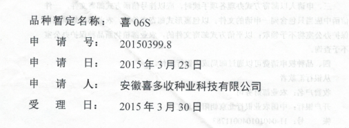 喜06S品種權(quán)申請(qǐng)受理通知書(shū)