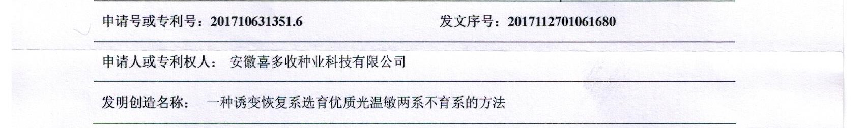 發(fā)明專利《一種誘變恢復(fù)系選育優(yōu)質(zhì)光溫敏兩系不育系的方法》實(shí)審?fù)ㄖ獣?/div>