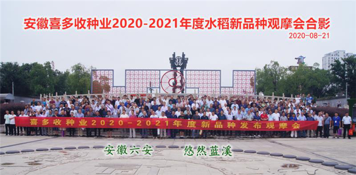 2020年8月20-21日,安徽喜多收種業(yè)在悠然藍(lán)溪隆重召開了“安徽喜多收種業(yè)2020年優(yōu)質(zhì)水稻新品種信息發(fā)布會(huì)”,邀請來自江蘇、湖南、湖北、河南、江西、安徽等省的400多位種業(yè)界嘉賓到會(huì),安徽省種子管理總站、六安市種子管理站領(lǐng)導(dǎo)以及有關(guān)新聞媒體親臨本會(huì)場進(jìn)行指導(dǎo)、采訪。