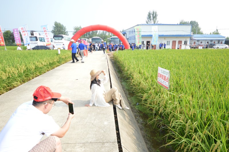 發(fā)布會開始前,參會嘉賓集中前往位于金安區(qū)水稻良種場的安徽喜多收種業(yè)試驗(yàn)示范基地:實(shí)地觀摩了公司自主育成的40余個水稻新品種的田間生長狀態(tài)展示。現(xiàn)場見證了喜兩優(yōu)系列、巧兩優(yōu)系列、鉆兩優(yōu)系列、均兩優(yōu)系列、多兩優(yōu)系列、領(lǐng)兩優(yōu)系列等30多個新品種良好的田間長勢,基地水稻充分展示了各自優(yōu)質(zhì)、高產(chǎn)、多抗等特征特性。很多嘉賓掏出手機(jī)拍下各個品種的田間照片,還有人干脆和“喜兩優(yōu)超占”來個合影,也有些經(jīng)銷商直接拍成抖音,甚至是直接打開直播間開始直播起來。這些新品種的展示確實(shí)讓人贊嘆不已!