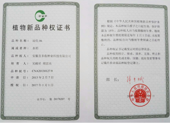 汕優(yōu)06植物新品種權(quán)證書(shū)