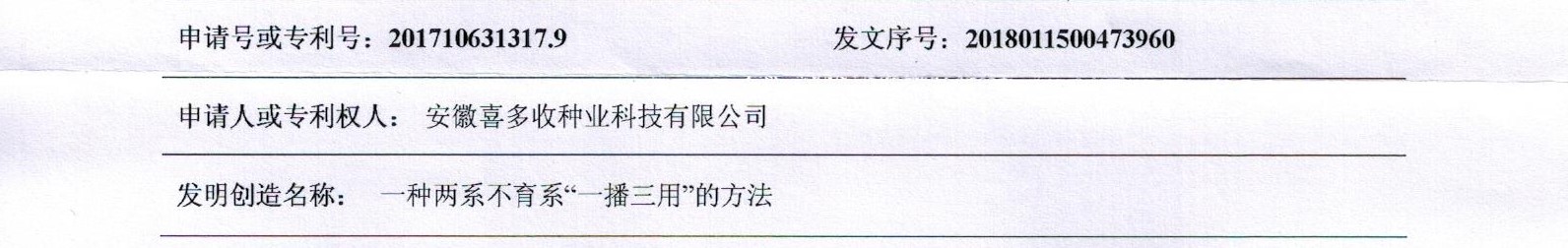 發(fā)明專利《一種兩系不育系“一播三用”的方法》實審通知書